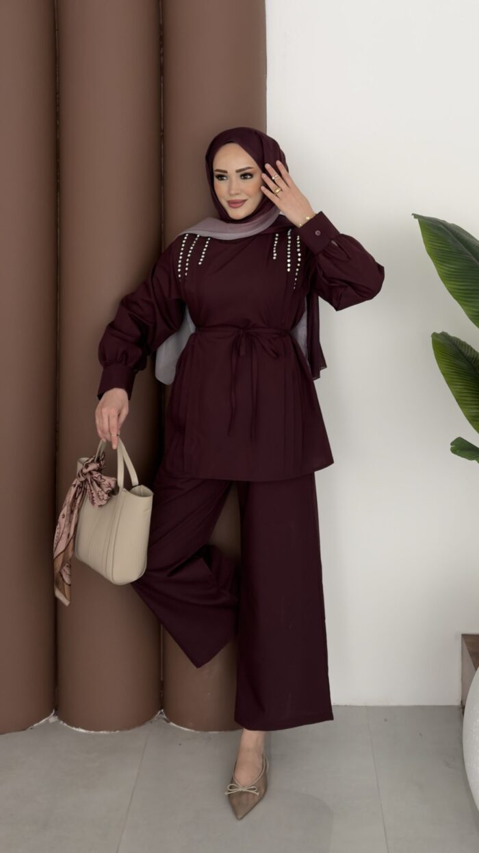 Moila Bronşlu Tensel İkili Takım – Bordo