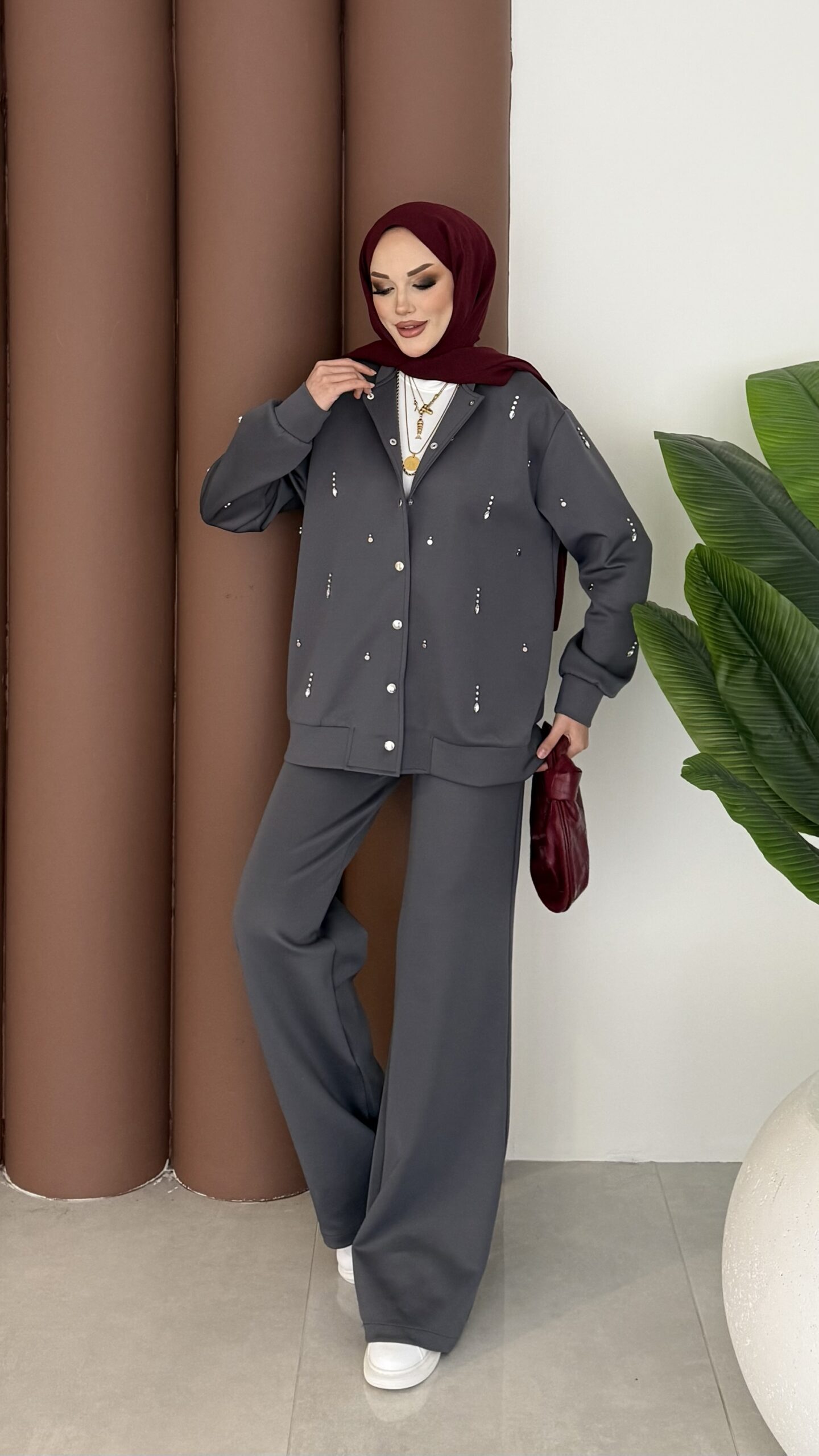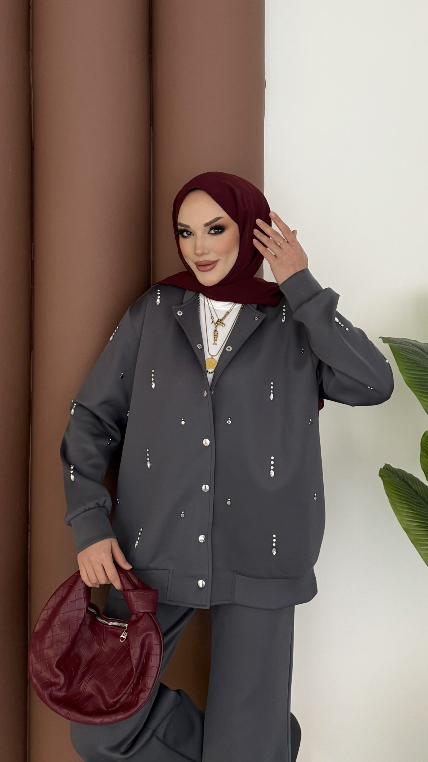 Bondi Vatkalı Çıtçıtlı Scuba İkili Takım – Antrasit
