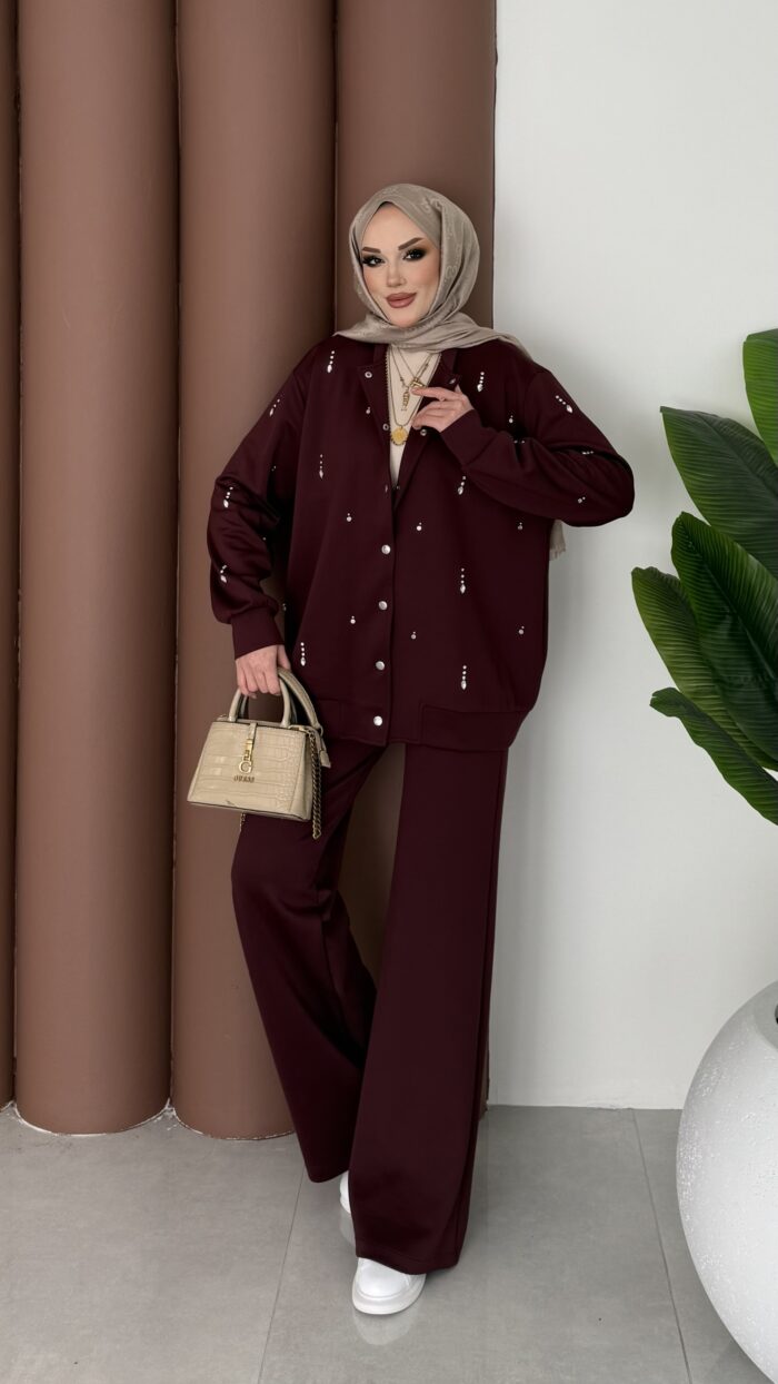 FoQus Oysh Garnili İkili Takım – Bordo