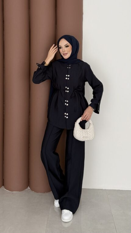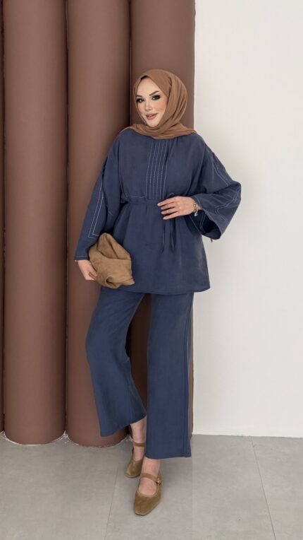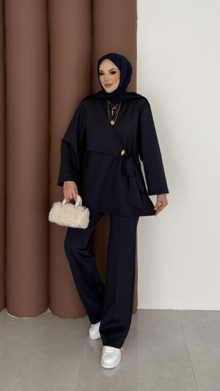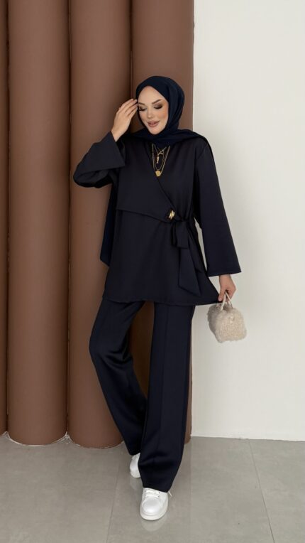 Belinda Premium Taşlı İkili Takım – Lacivert