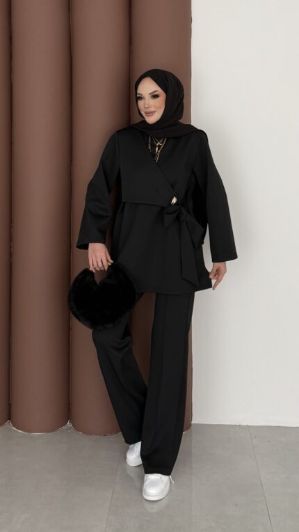 Premium Piliseli Arabic Çizgili İkili Takım – Siyah