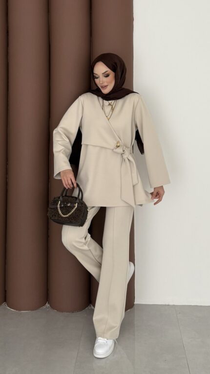 Merly Yandan Bağlamalı Scuba İkili Takım – Bej