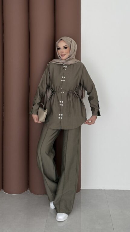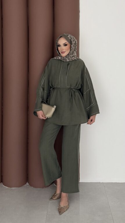 Premium Piliseli Arabic Çizgili İkili Takım – Haki