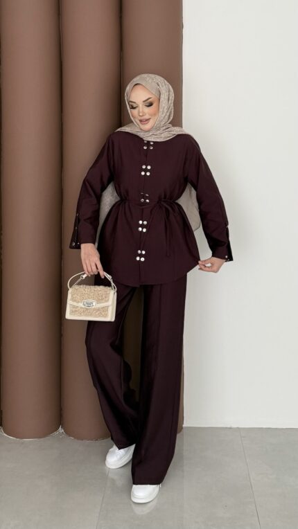 Premium Piliseli Arabic Çizgili İkili Takım – Bordo