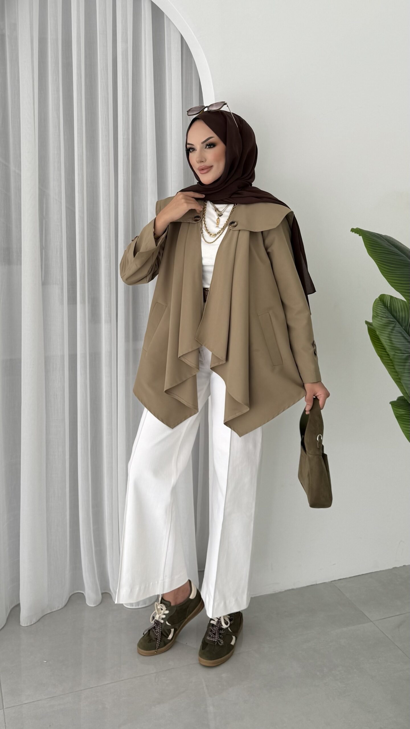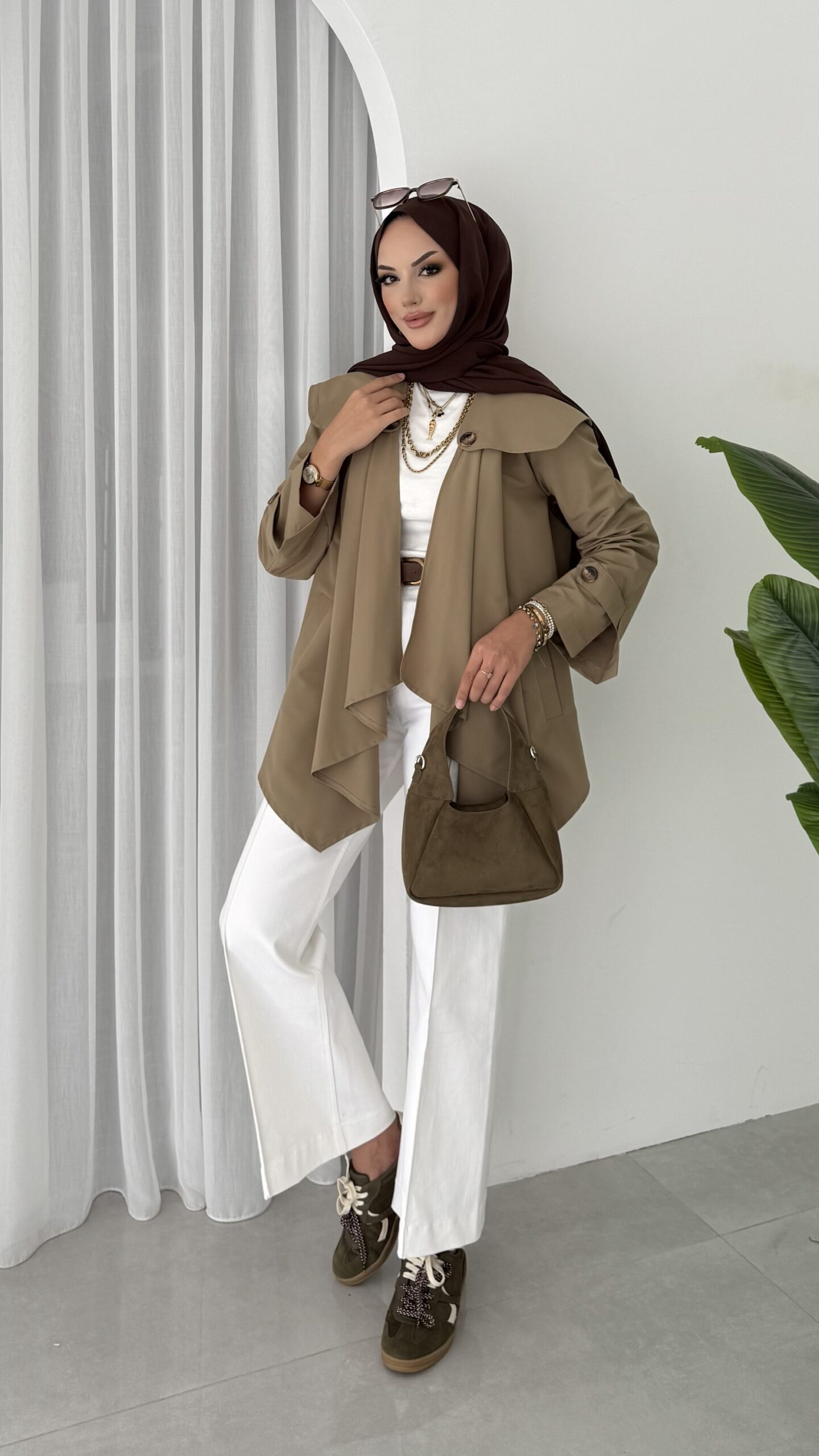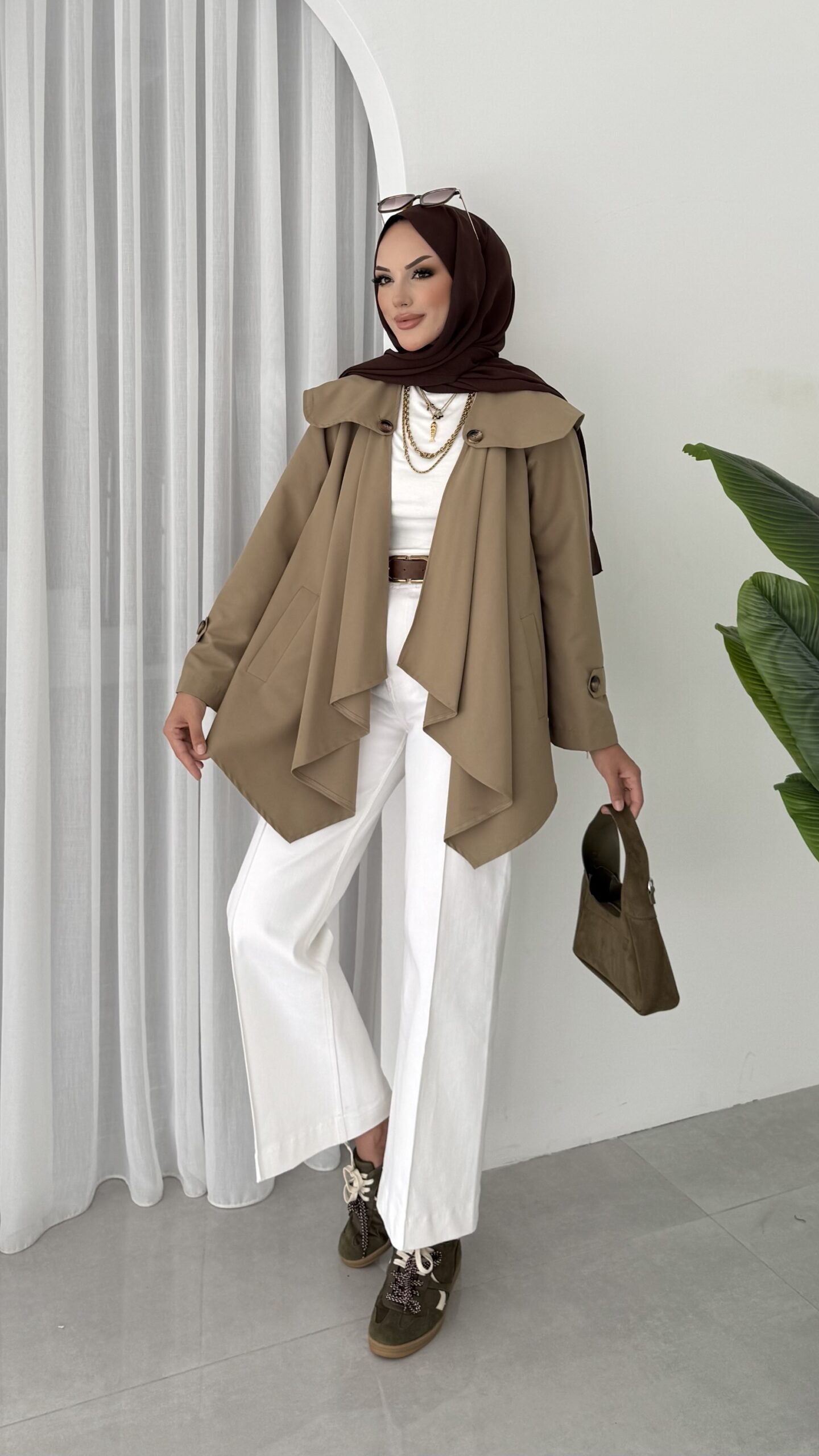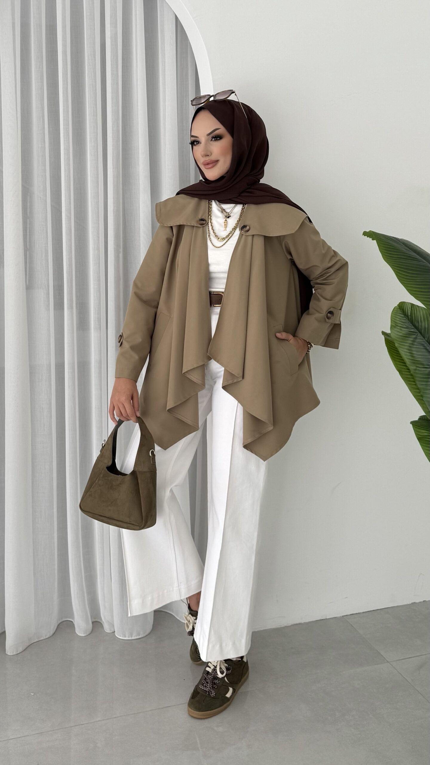 Maxi Tasarım Kemerli Trençkot – Haki