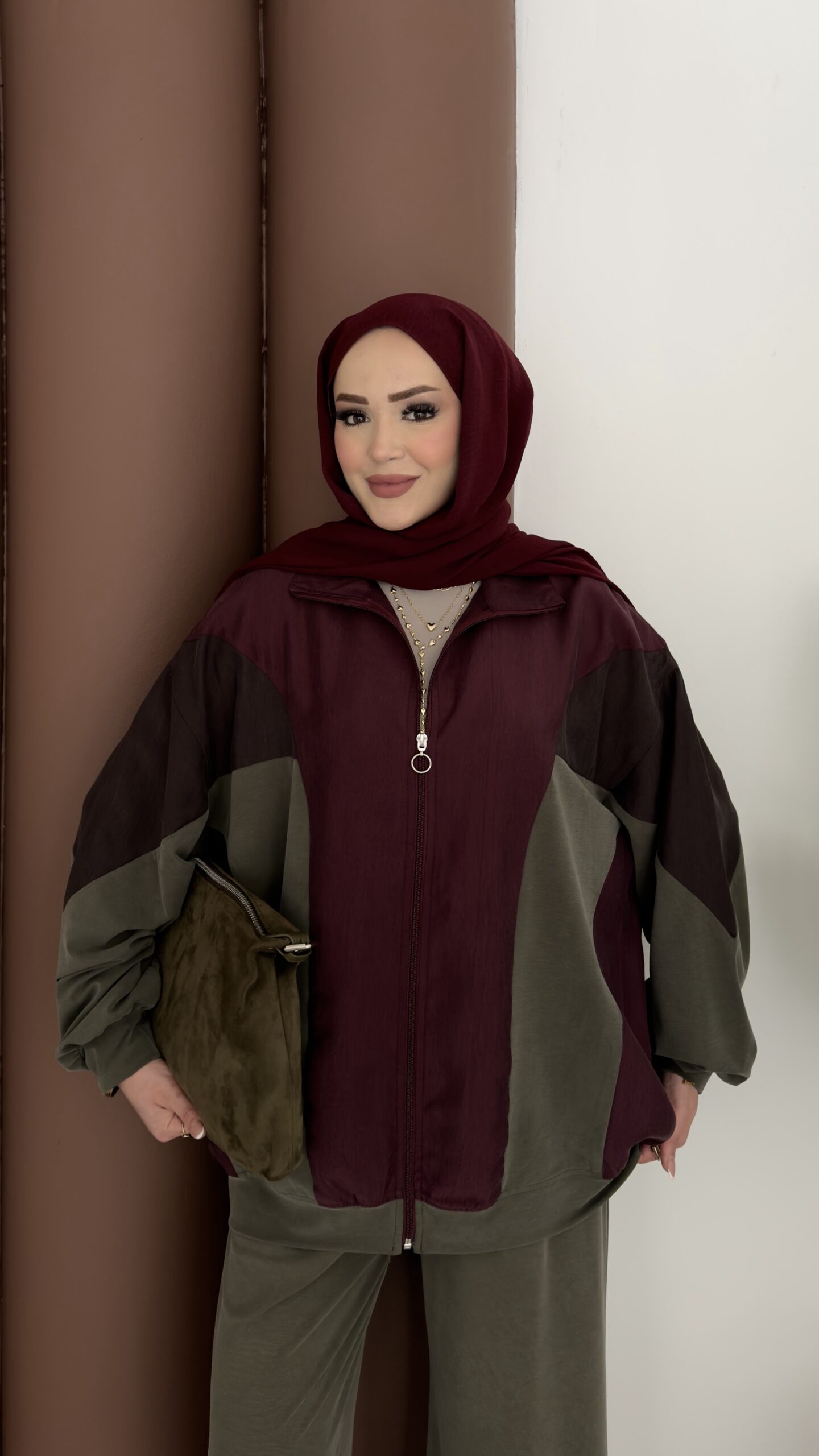 Bondi Vatkalı Çıtçıtlı Scuba İkili Takım – Kahverengi