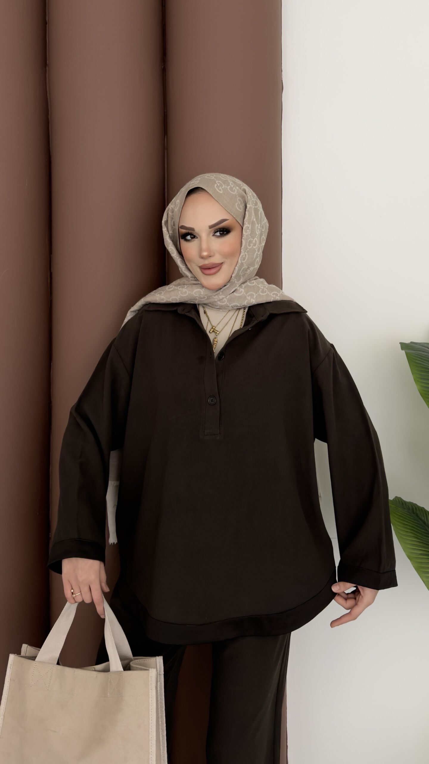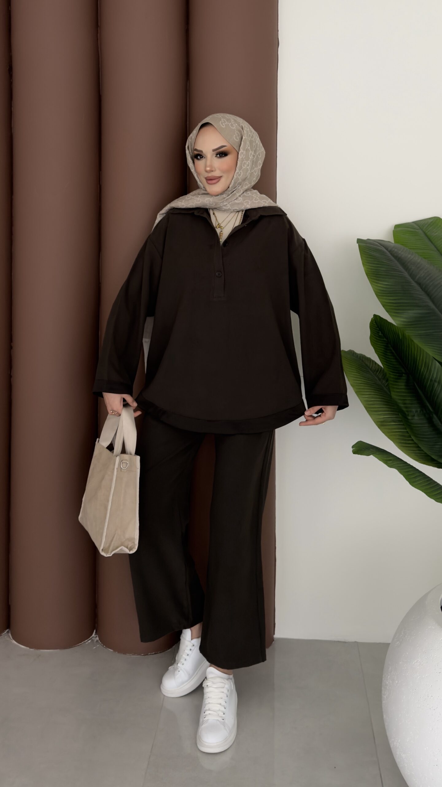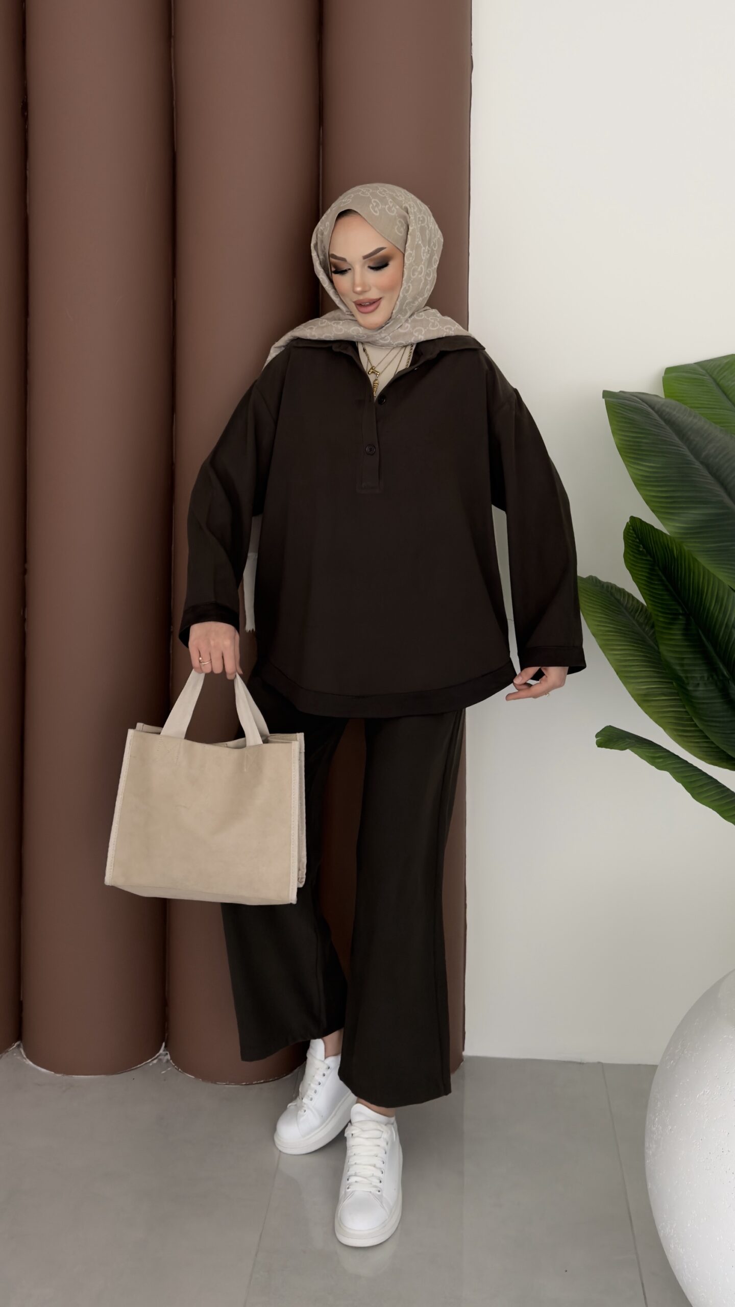 Tesla Saten Garnili İkili Takım – Kahverengi