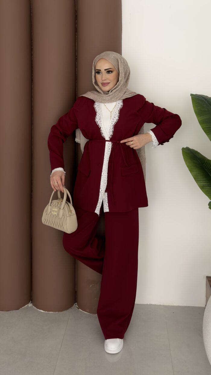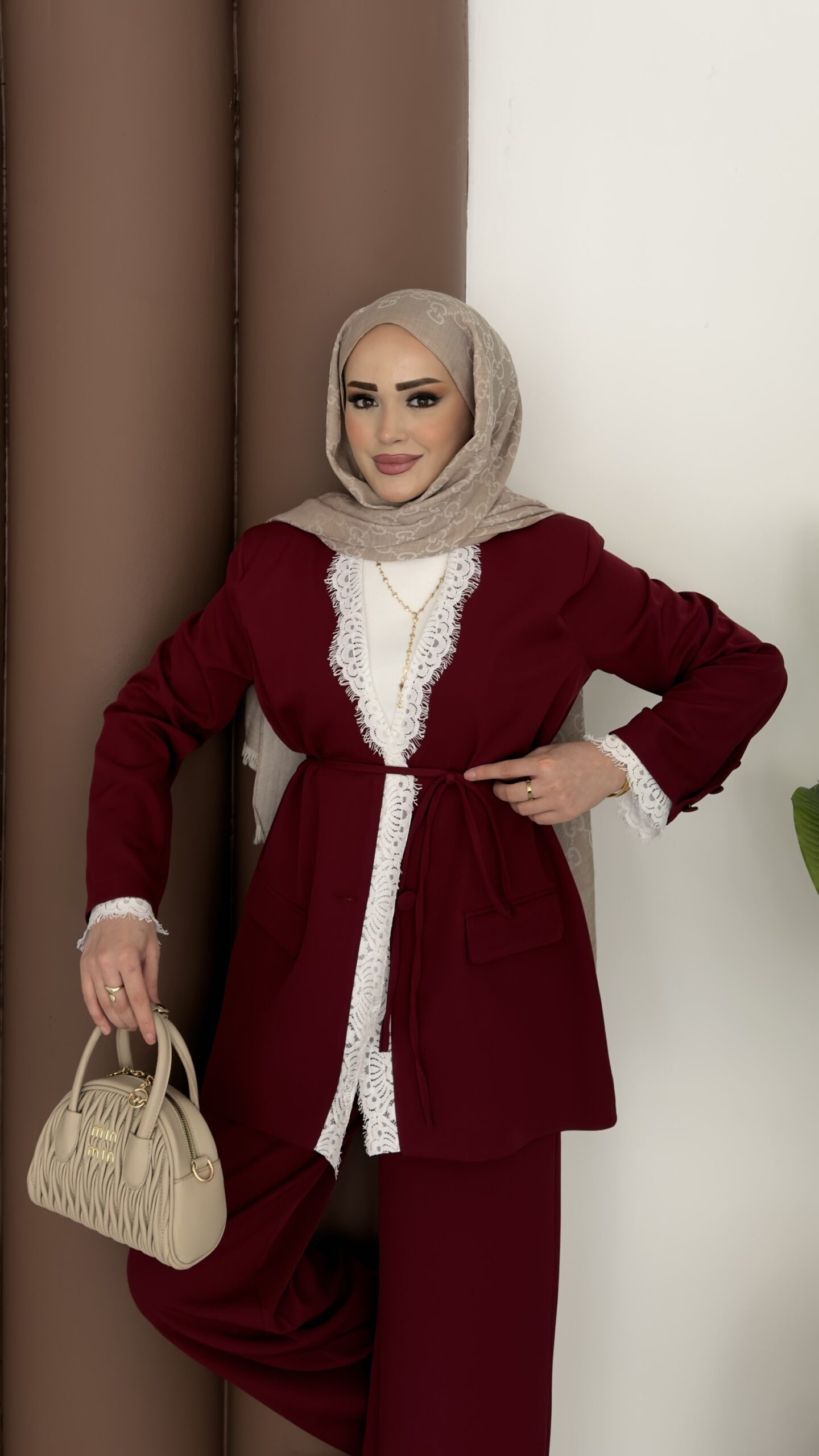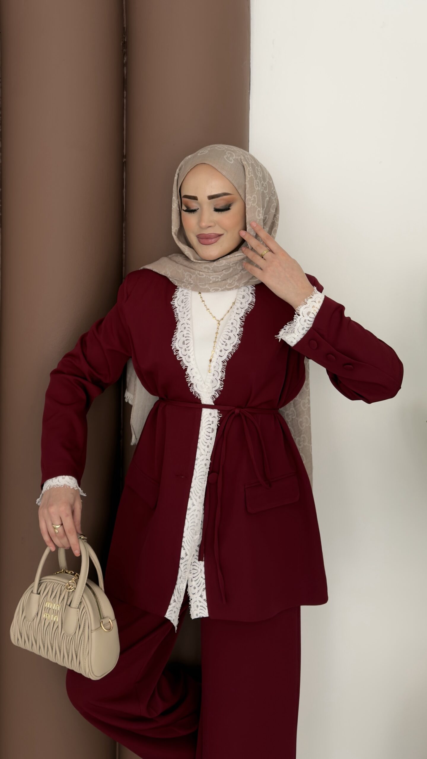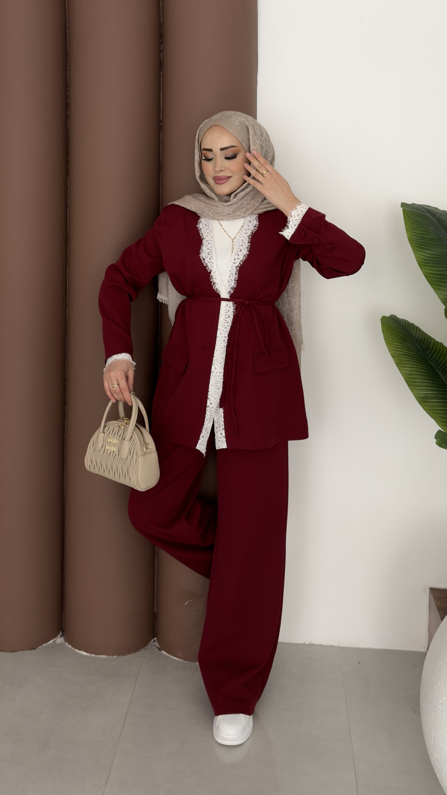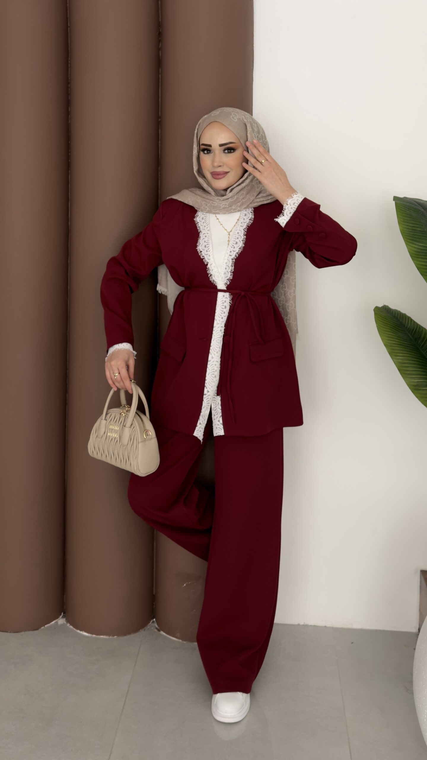 Tylor Dantelli Dabıl İkili Takım – Bordo