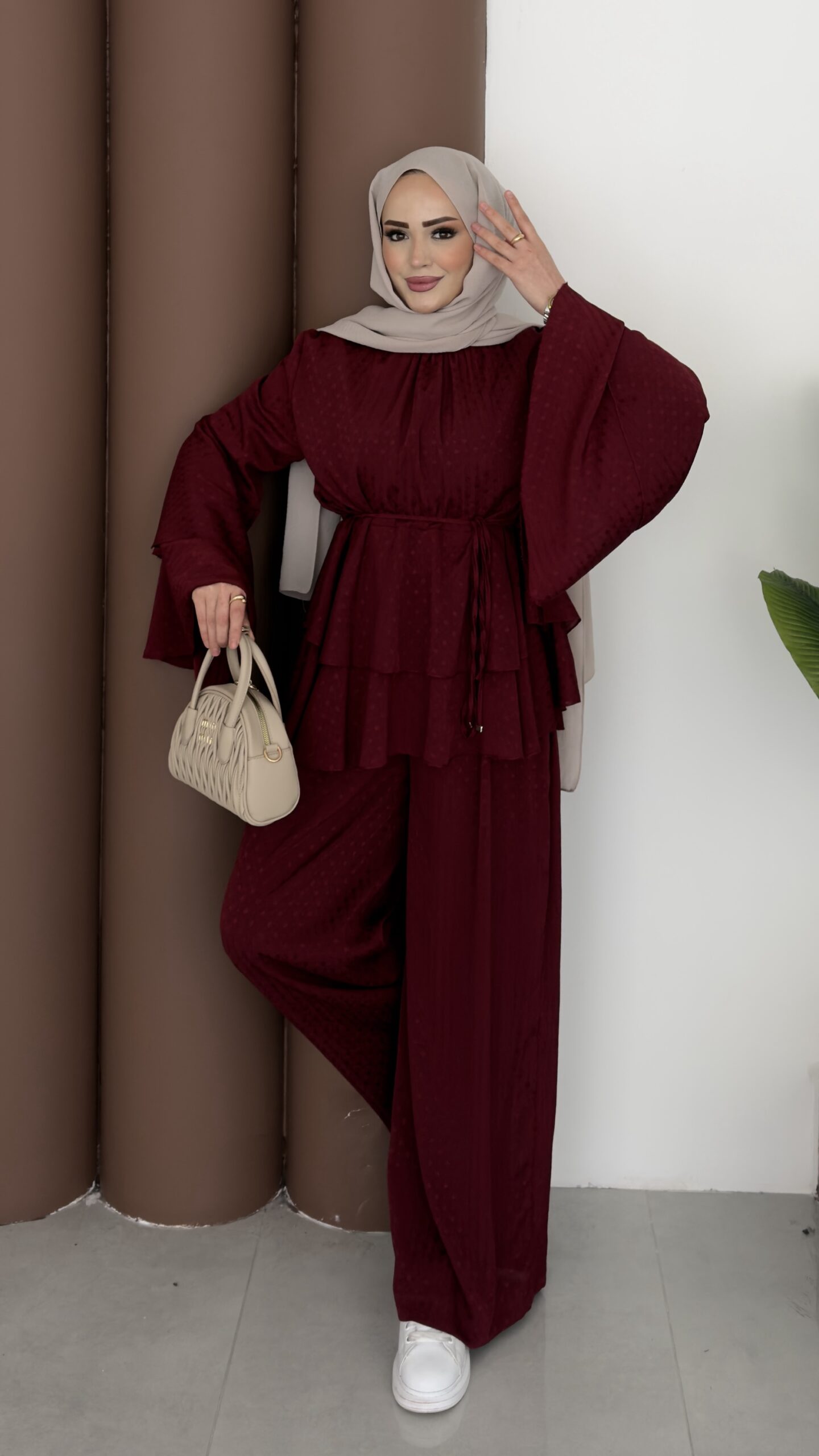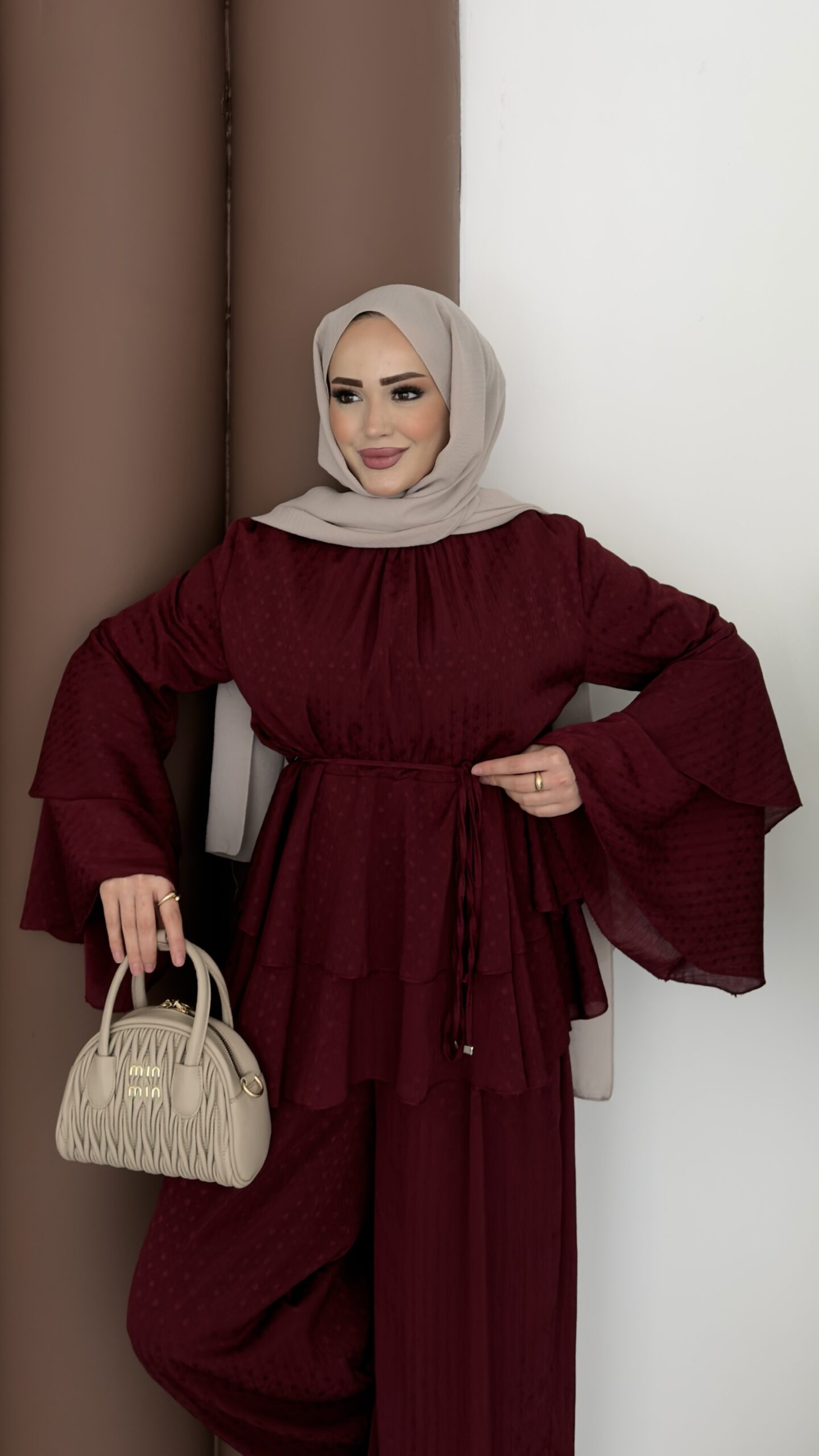 Arabic Pelerinli Modal İkili Takım – Kahverengi