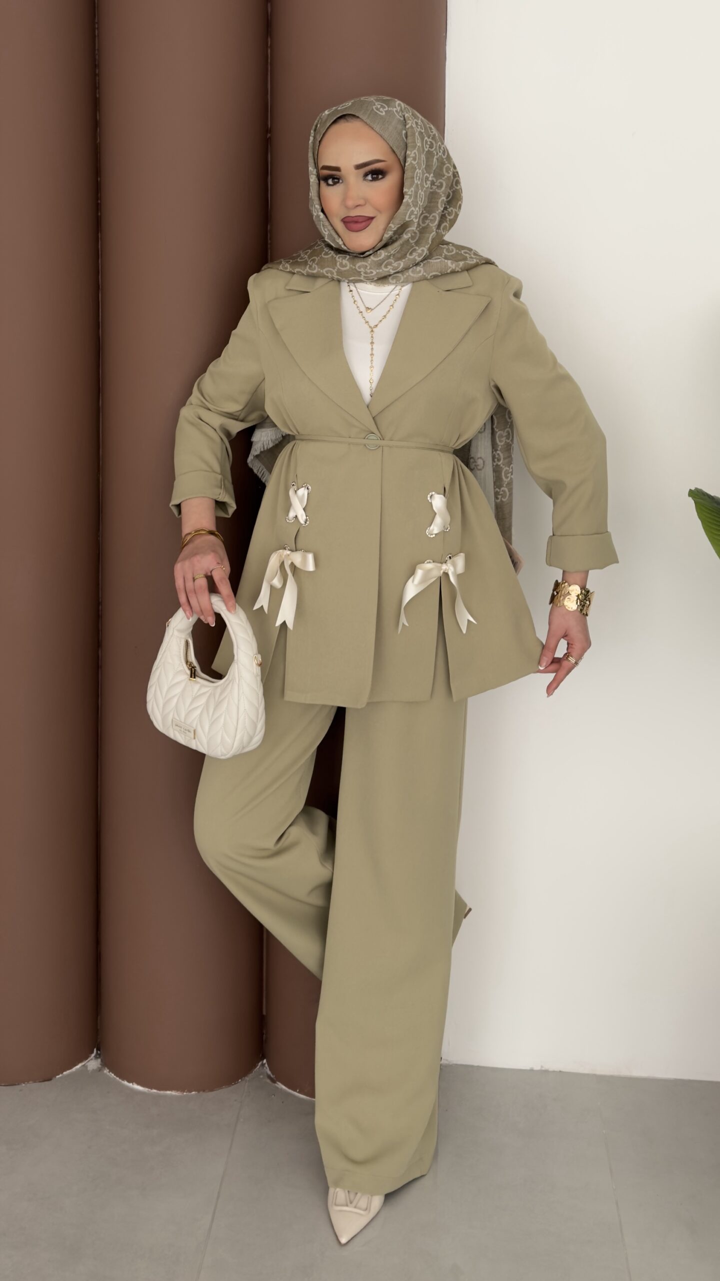 Velvet Kurdelalı Double İkili Takım – Yağyeşil