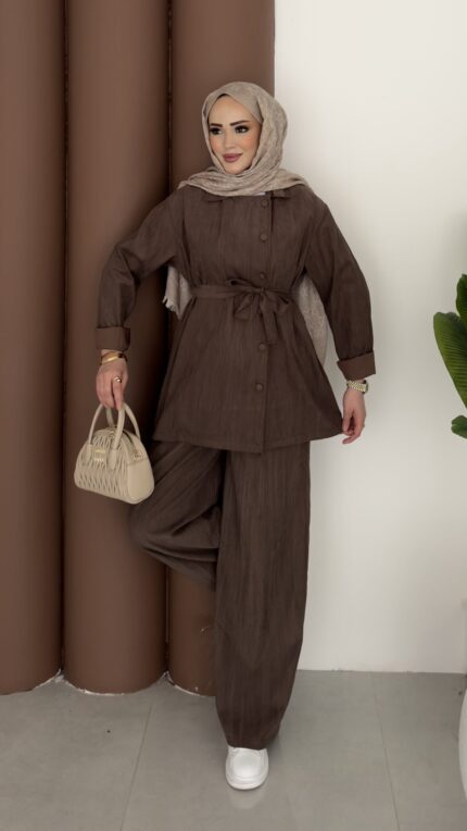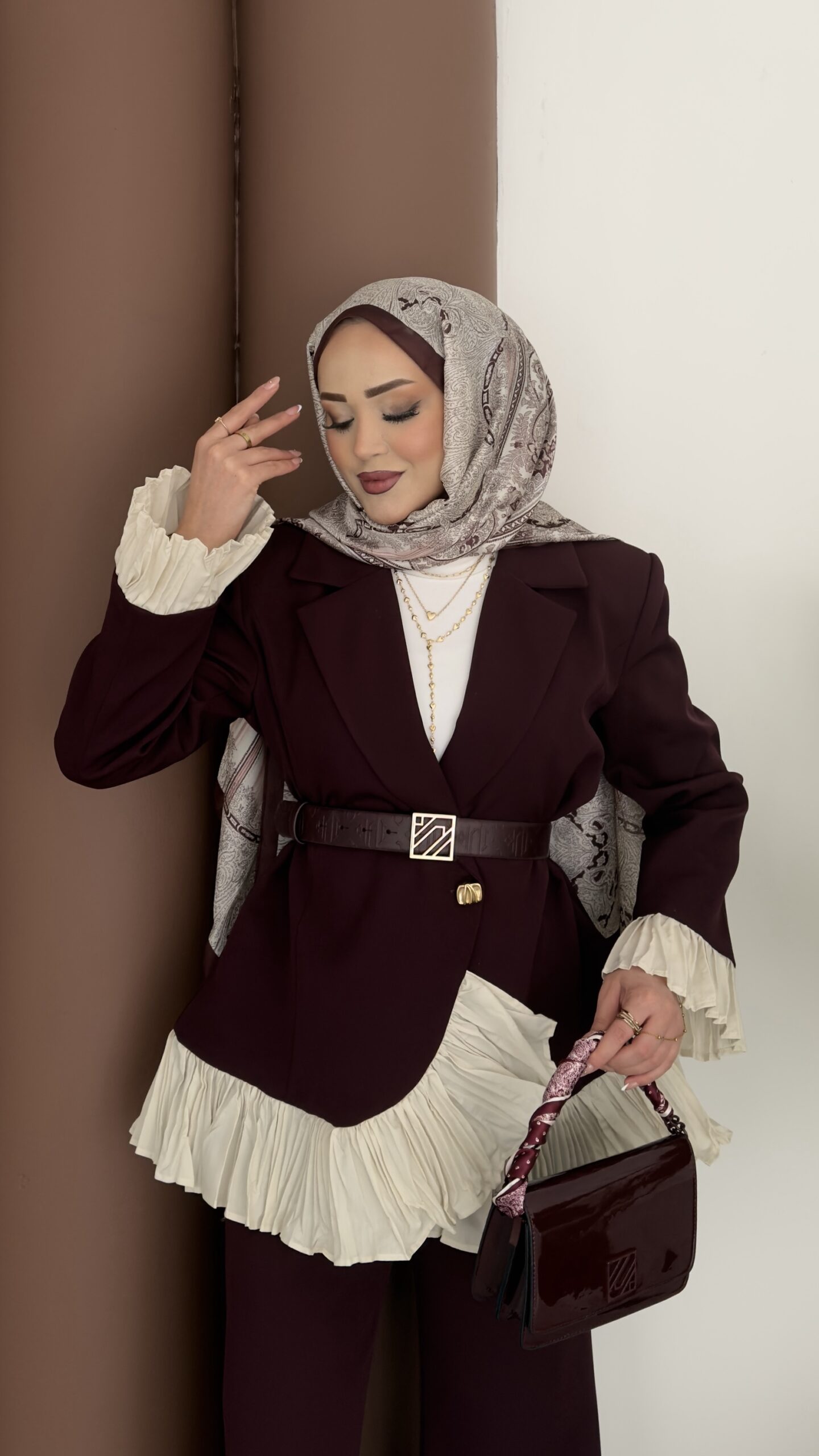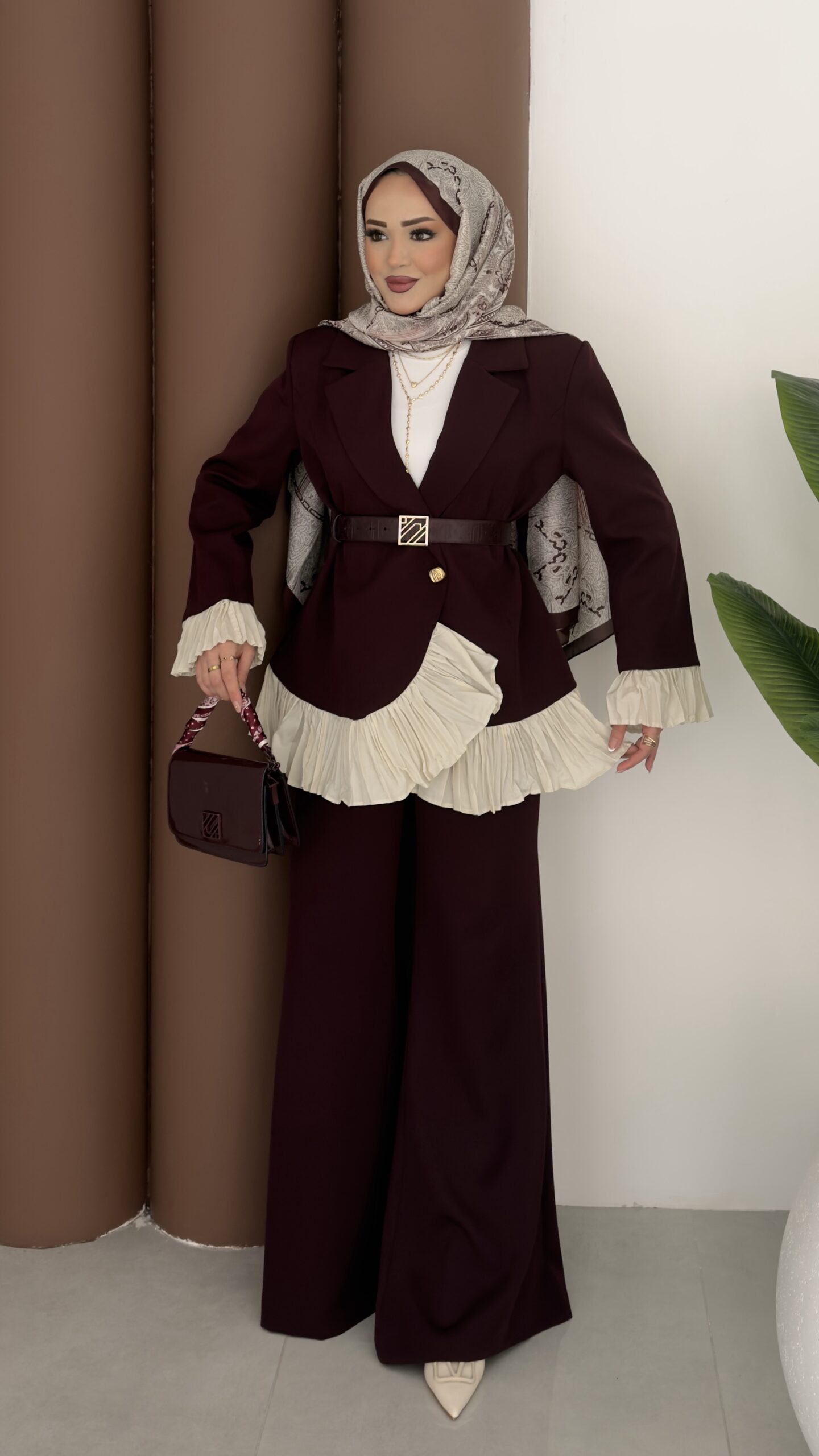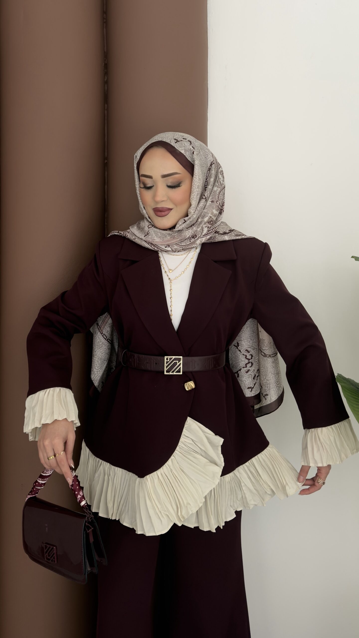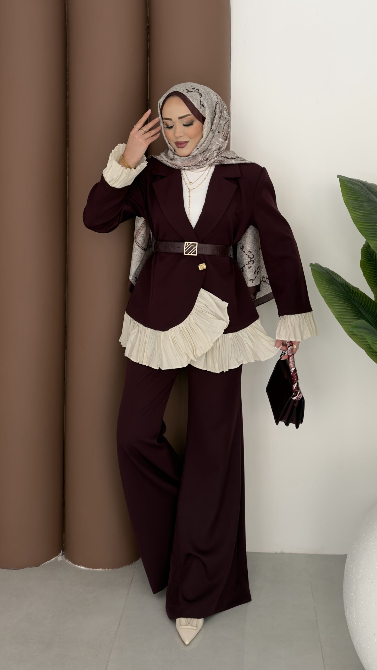 Violet Piliseli Double Blazer İkili Takım – Mürdüm