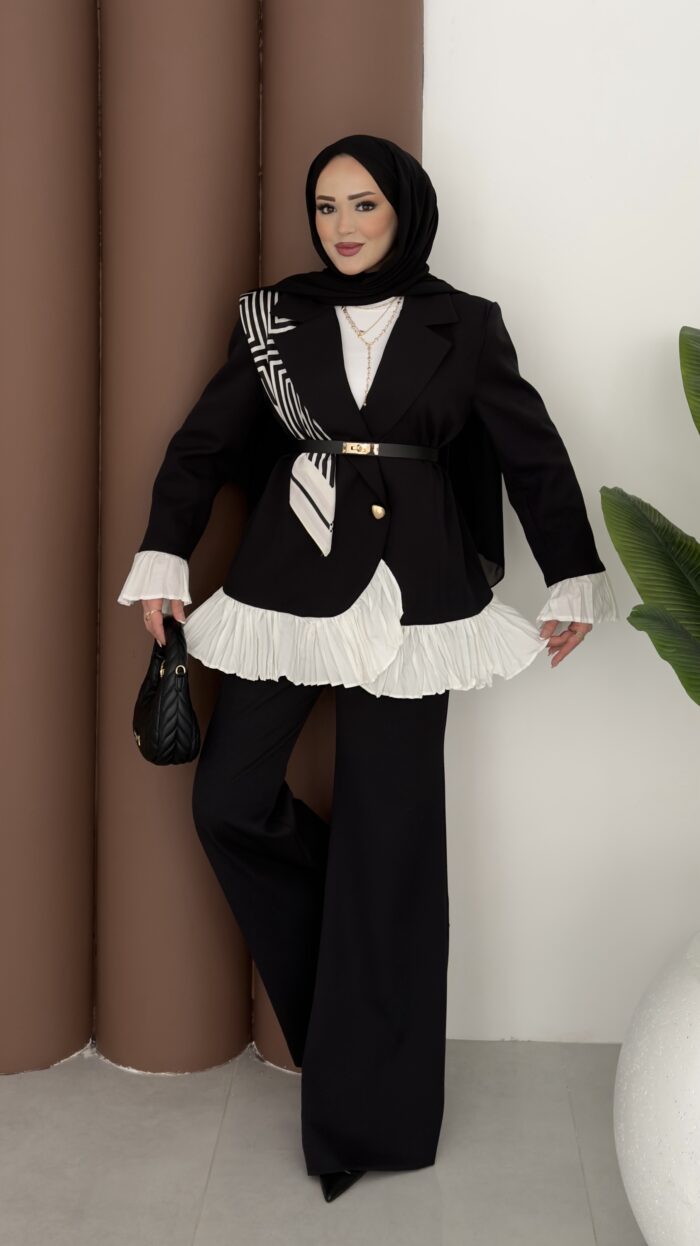 Violet Piliseli Double Blazer İkili Takım – Siyah