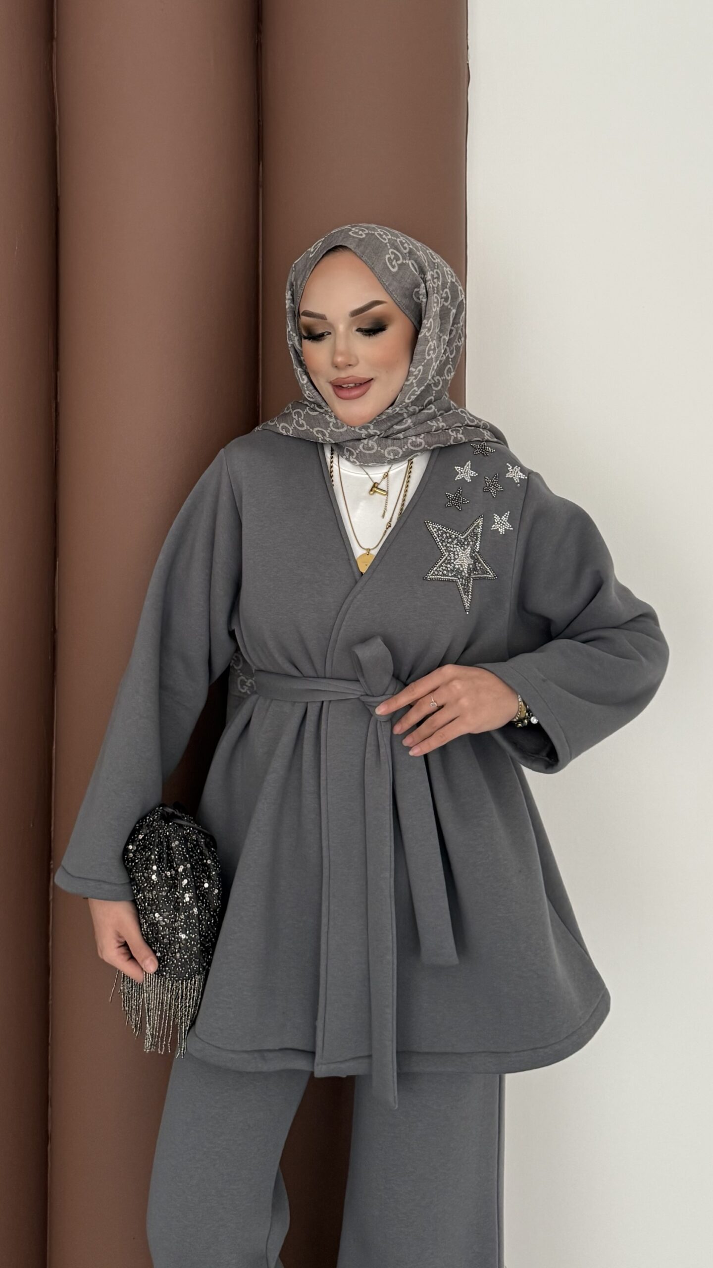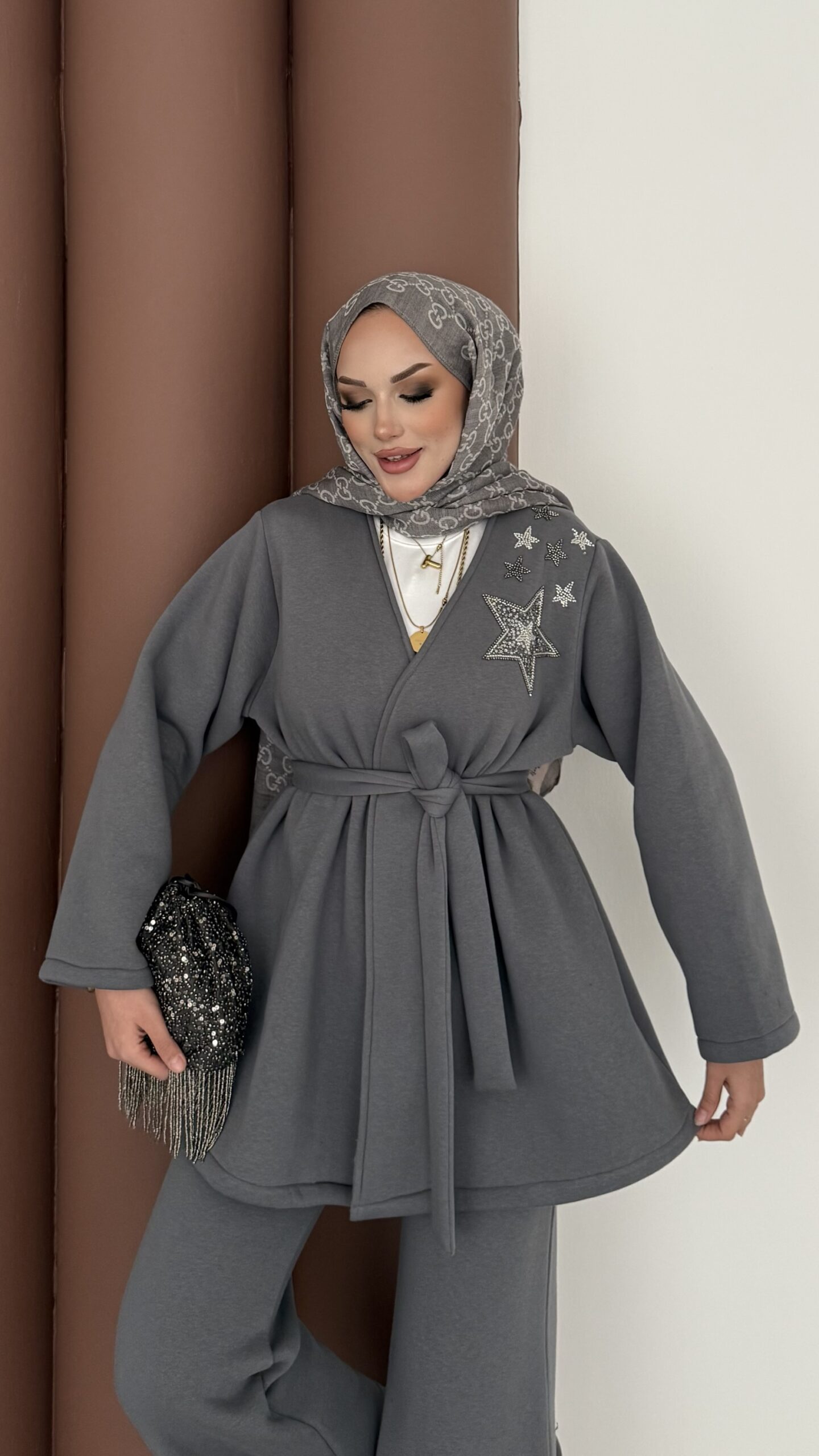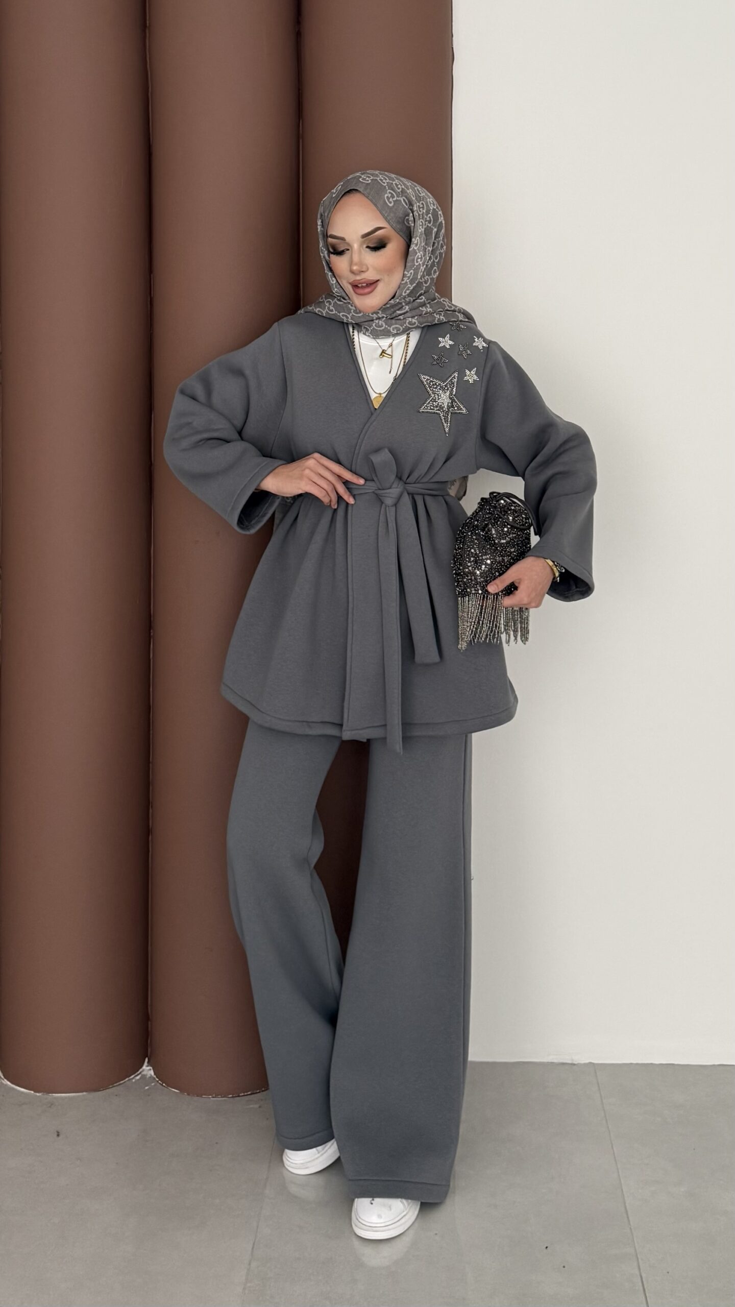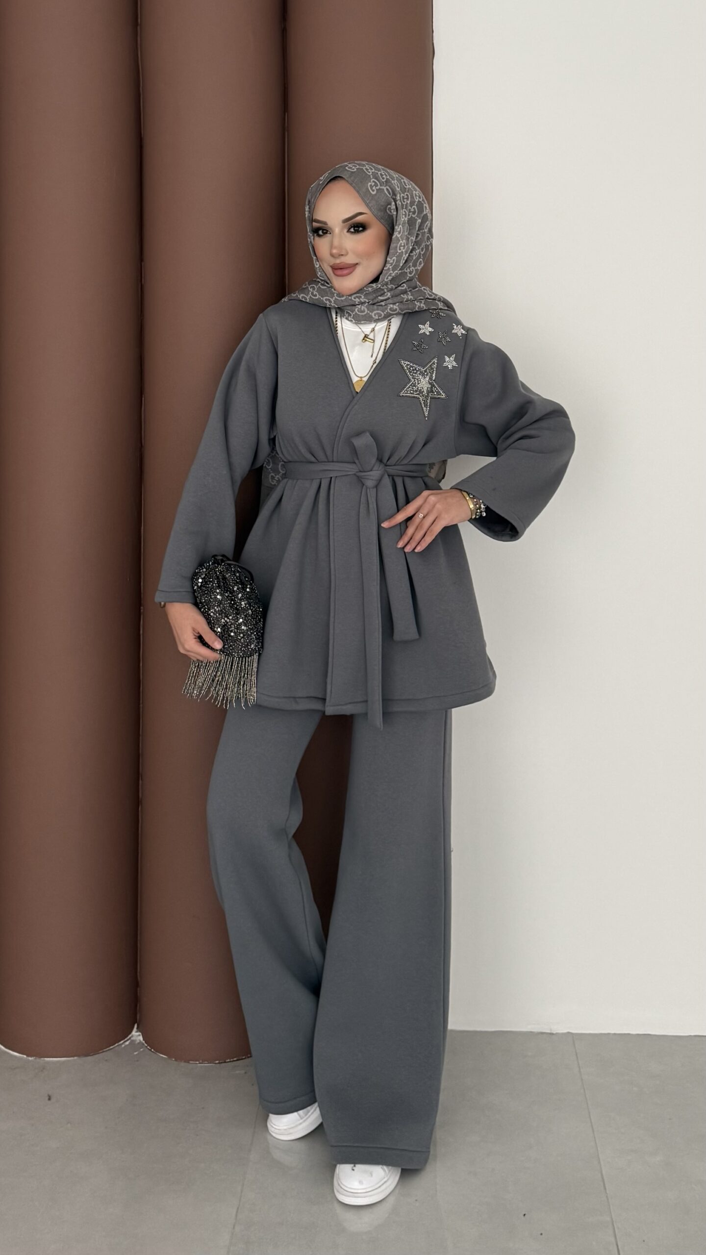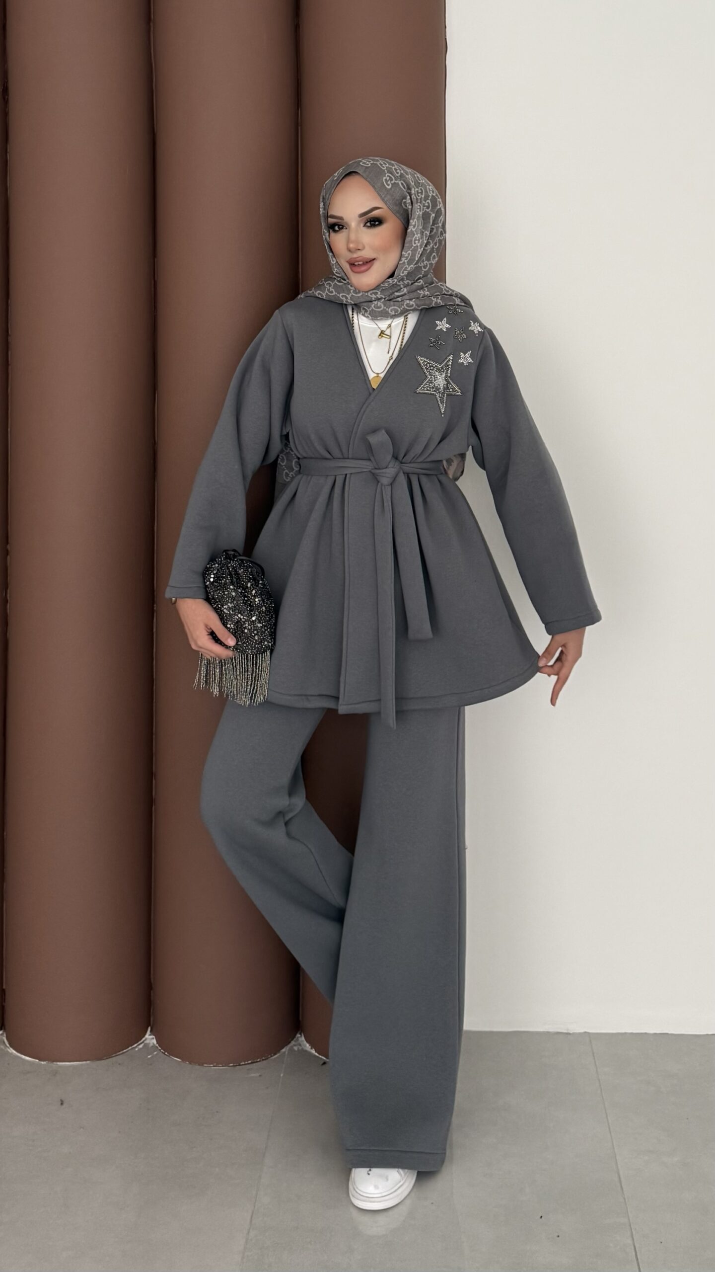 Yıldız Nakışlı Şardonlu İkili Takım – Antrasit