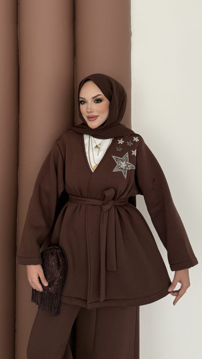 Yıldız Nakışlı Şardonlu İkili Takım – Kahverengi