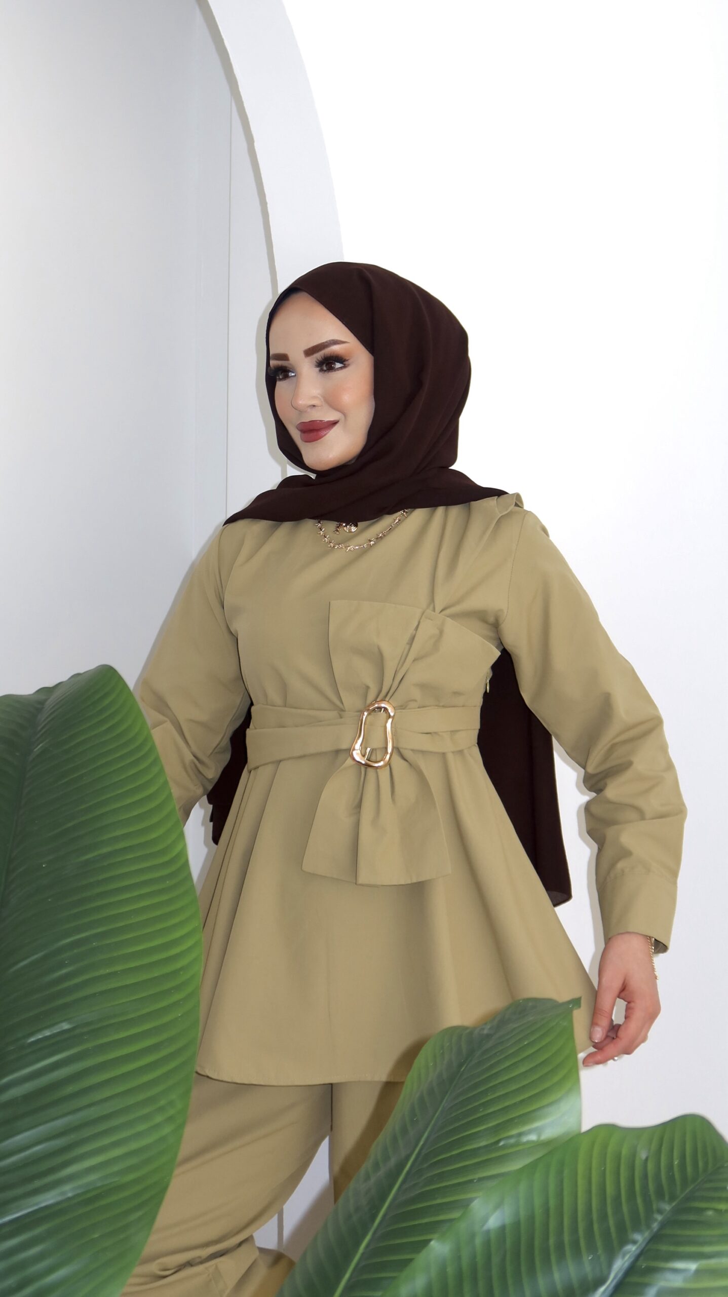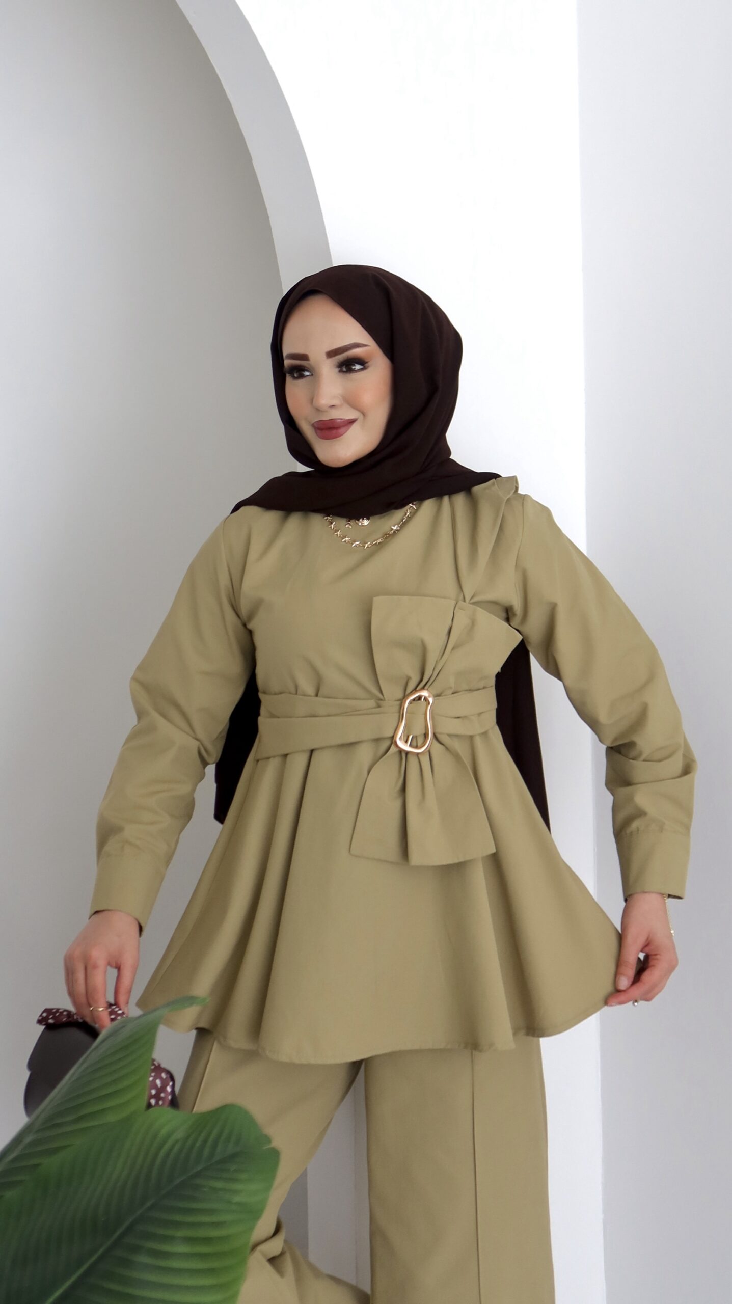 Zaira Fiyonklu Poplin İkili Takım – Yağyeşil