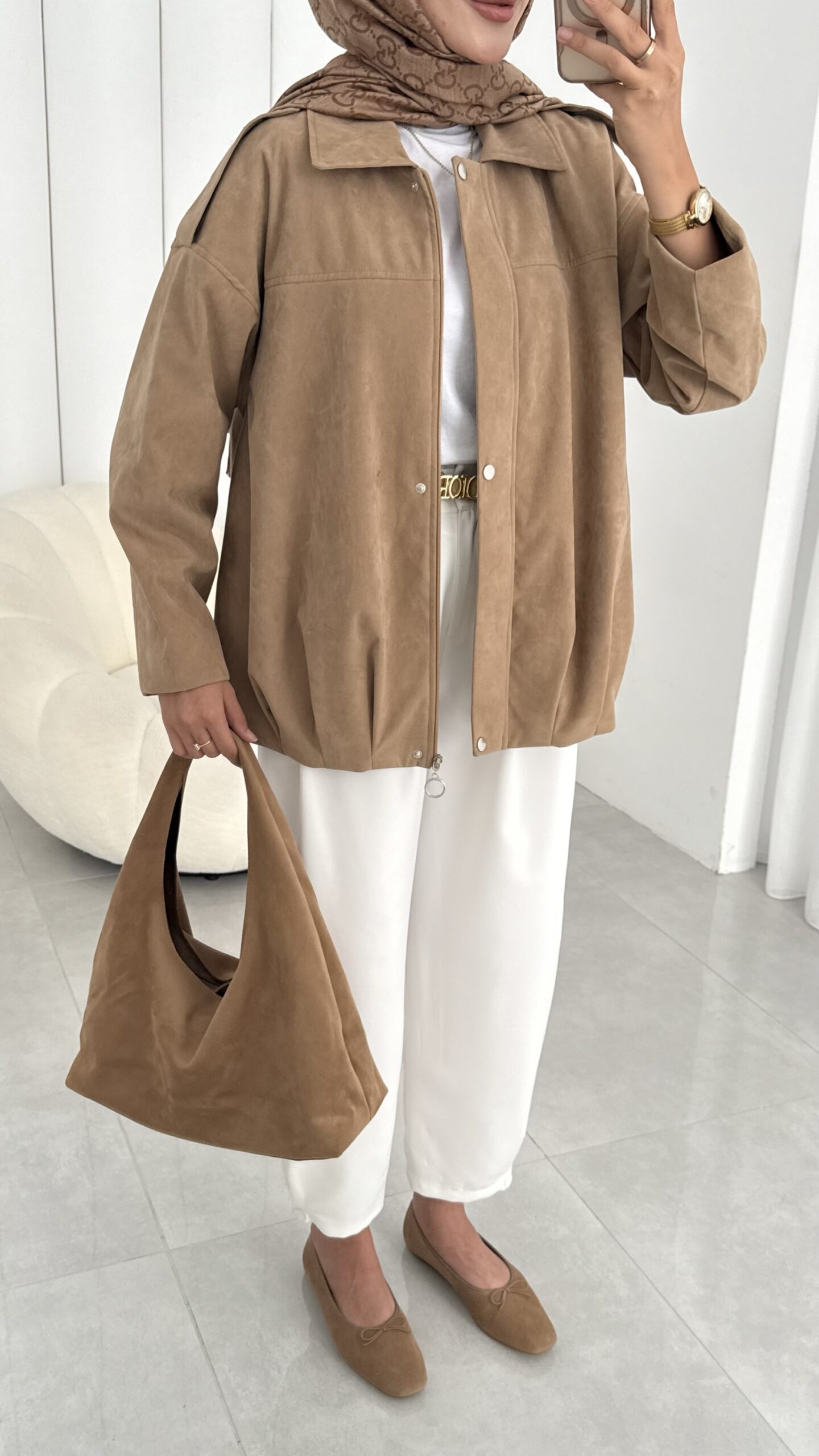 Zra Muadil Süet Bomber Ceket - Acı Kahve